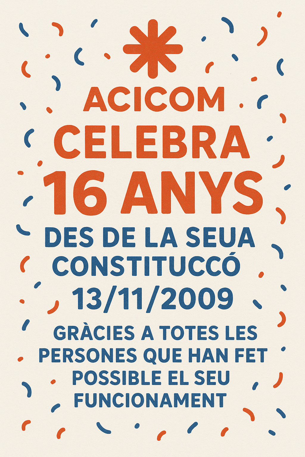 Avui fa 16 anys que ens vam juntar per promoure ACICOM, en una assemblea constituent
