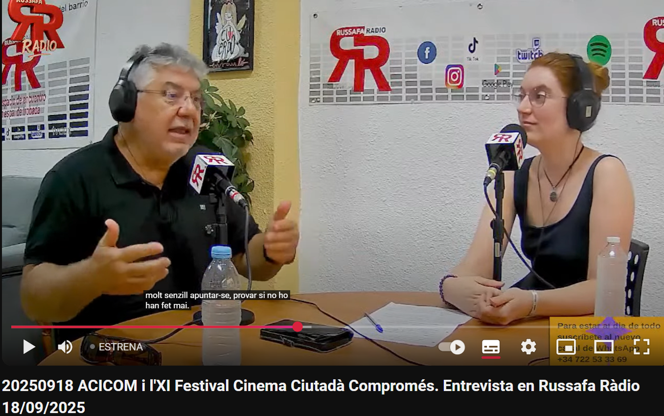 Aprofitem per anunciar-vos que a partir del dia 2 d’octubre iniciem un nou projecte amb el programa “VEUS ACICOM”, que realitzarem tots els dijous, de 12 a 13h. en Russafa Ràdio, que podreu seguir en directe o en diferit, i per les xarxes socials d’ACICOM i per les de Russafa Ràdio.