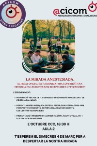 Presentació del llibre d’Assumpta Jover Leal, L’amor en temps del capitalisme, obra premiada al concurs d’ACICOM: Joves Investigacions / Nova Comunicació Assumpta Jover Leal és sociòloga, i estudia les relacions afectivo-sexuals entre dones i homes. Presenta la periodista i vicepresidenta d’Acicom, Emília Bolinches. Dimecres, 29 de gener......