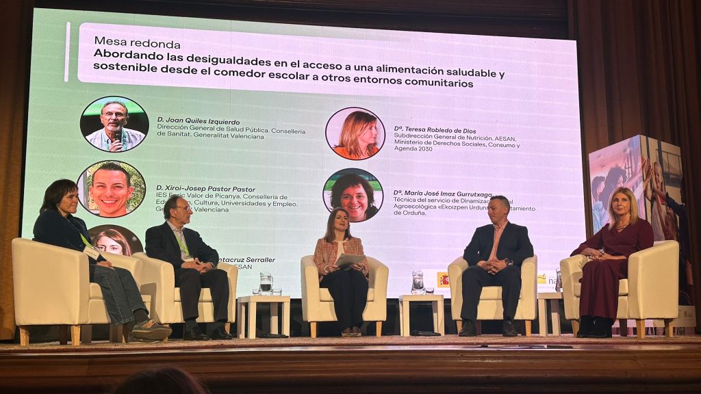 La intervenció del projecte Cantina S3 s’ha realitzat en el marc de la taula redona “Abordant les desigualtats en l’accés a una alimentació saludable i sostenible des del menjador escolar a altres entorns comunitaris”, moderada per la directora executiva de l’AESAN, Ana López-Santacruz. Juntament amb el nostre projecte, s’han presentat altres experiències com School Food 4 Change (Generalitat Valenciana), el Comedor Municipal de Orduña i el desenvolupament del Real Decret per al foment d’una alimentació saludable i sostenible en centres educatius.