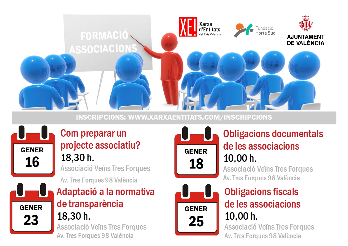 La Xarxa d’Entitats ha preparat quatre cursos de formació per al mes de gener, amb la col·laboració de l’Ajuntament de València.