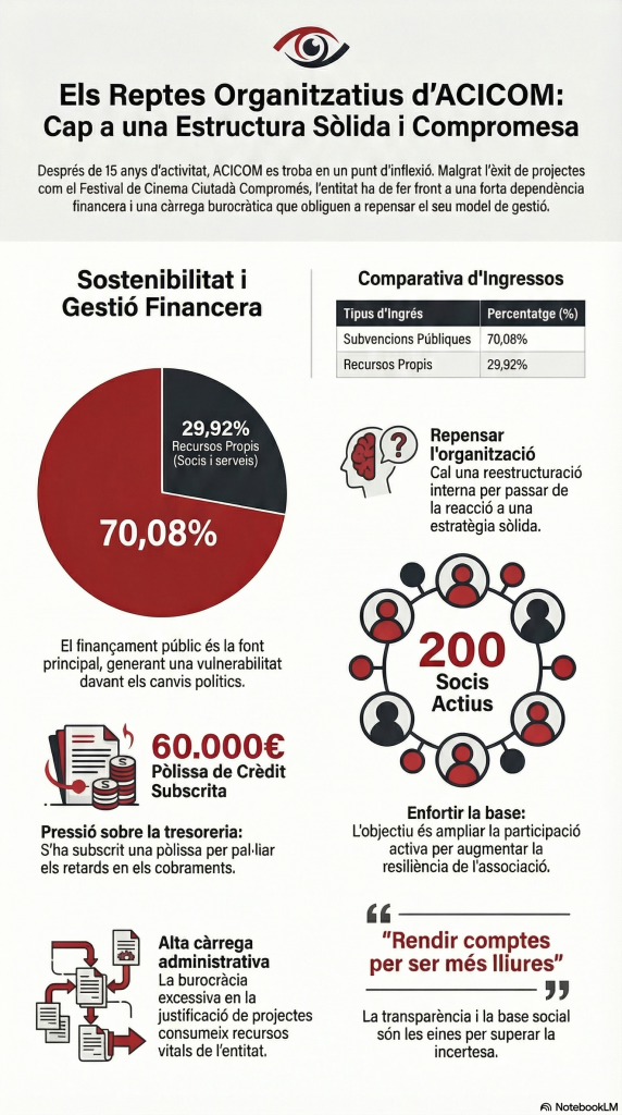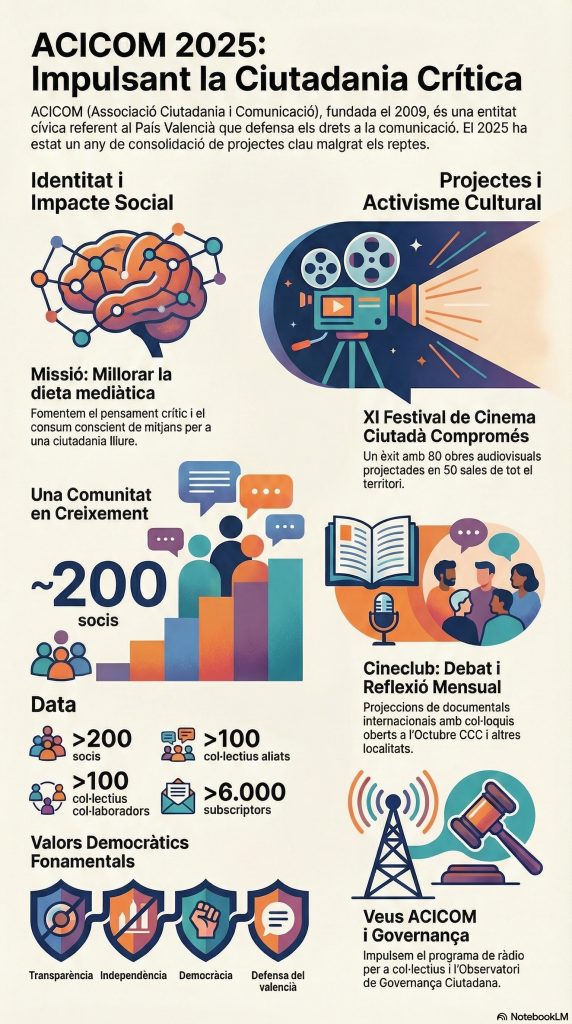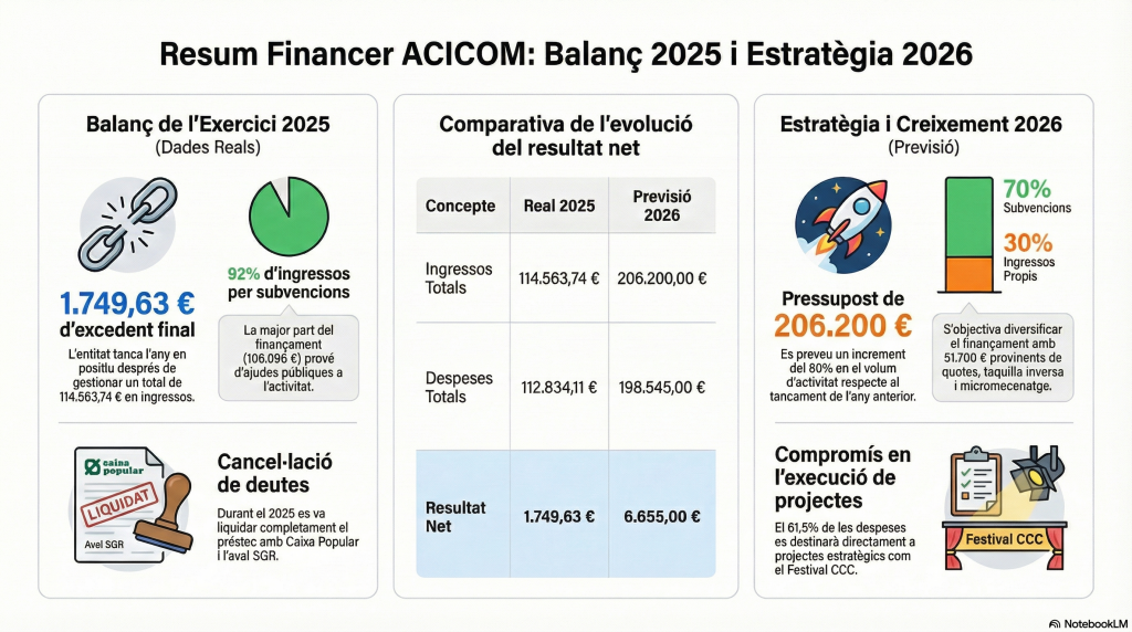 L’exercici 2025 ha representat per a l’Associació Ciutadania i Comunicació (ACICOM) un any de consolidació operativa i equilibri financer. La gestió s’ha centrat a maximitzar l’impacte social dels
