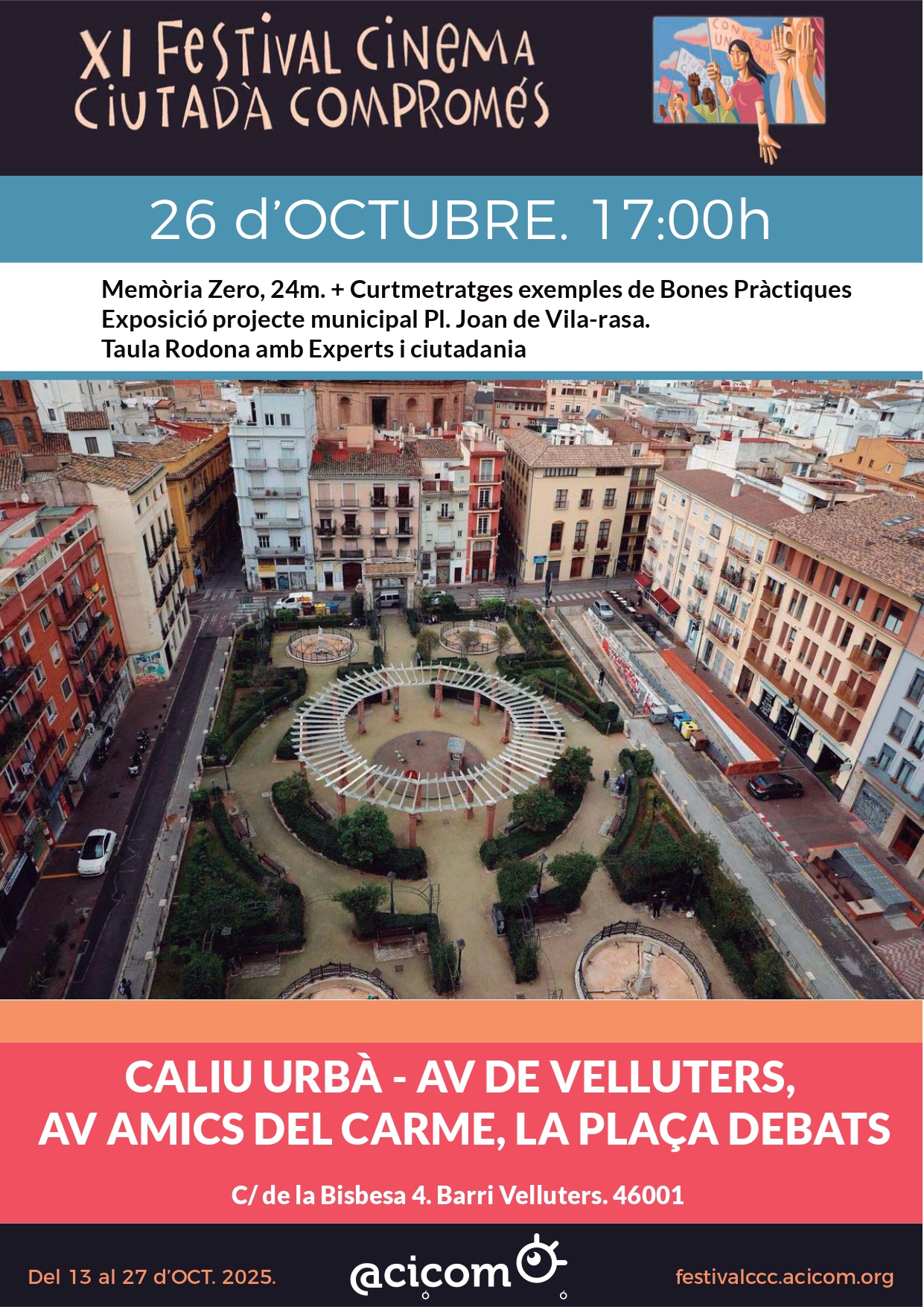 L’XI FESTIVAL CINEMA CIUTADÀ COMPROMÉS amb estreta col·laboració de les associacions veïnals Amics de Velluters i Amics del Carme, l’associació La Plaça Debats i del projecte Caliu Urbà us convidem a una sessió especial sobre Urbanisme i Ciutadania